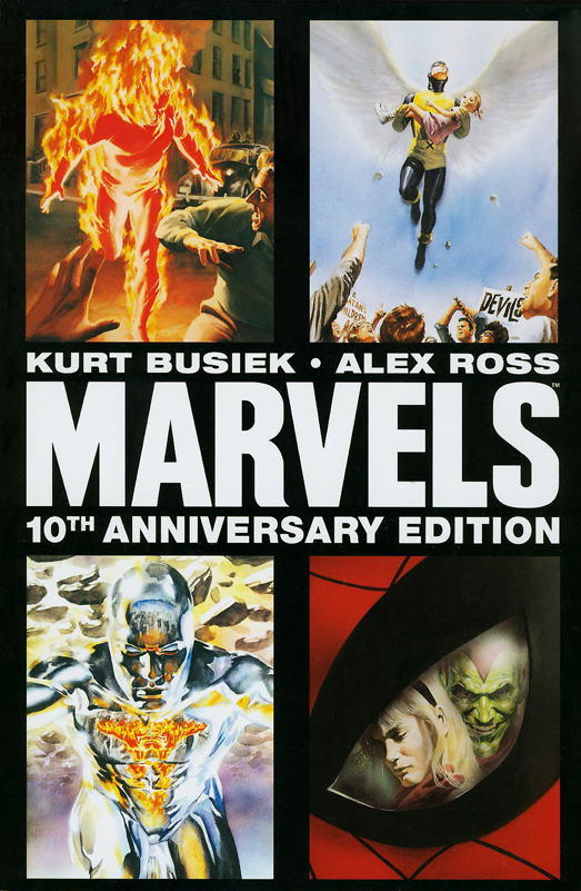 Combining key scenarios from Marvel Comics� sixty-year history with the almost photorealistic painting of Alex Ross, Kurt Busiek�s 1995 graphic novel Marvels has as its focus not a string of superhuman dramas, but the human bystanders who witness them. Told entirely from the perspective of a newspaper photographer, the story�s enormous span interlinks some of the medium�s finest moments. From the Frankenstein undertones of the 1940s Human Torch to the civil rights reflections of the X-Men, Busiek and Ross address the emotional impact of the fantastic, contrasting panoramic spectacle with notes of awe, fear, and alienation. Such is the book�s visual opulence and subtlety, the eye lingers over almost every page, absorbing period detail, both real and from its own fictional history. Lovingly crafted and strangely poignant, Marvels is no mere chronology of nostalgia, but an existential reminder of a capacity for wonder that adults all too often lose.